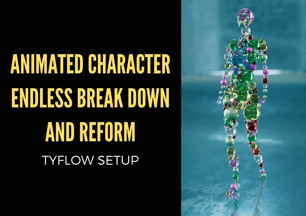 This is an animated character endless break down and reform Tyflow Setup, easy to tweak and adapt to your own character and motion